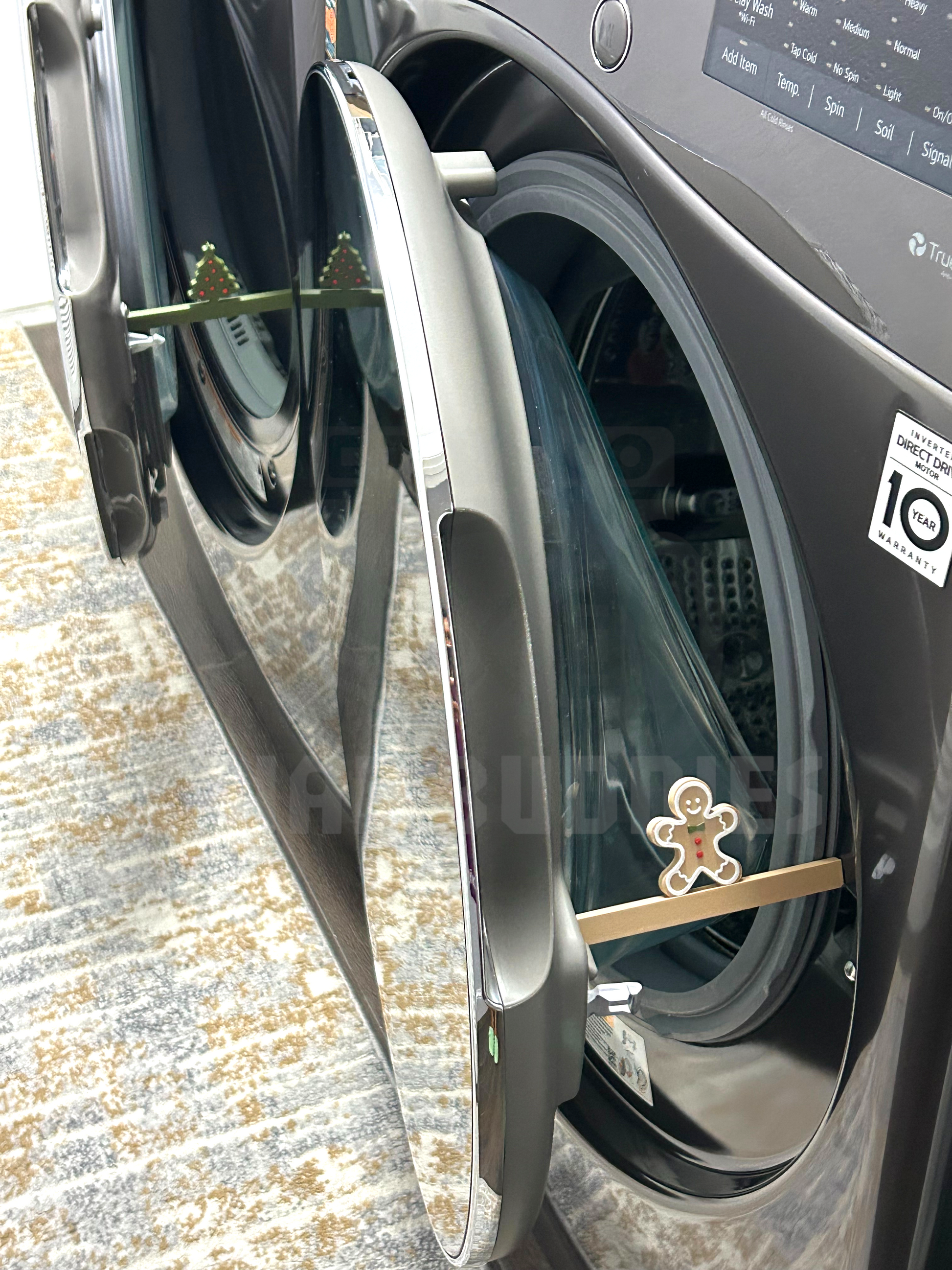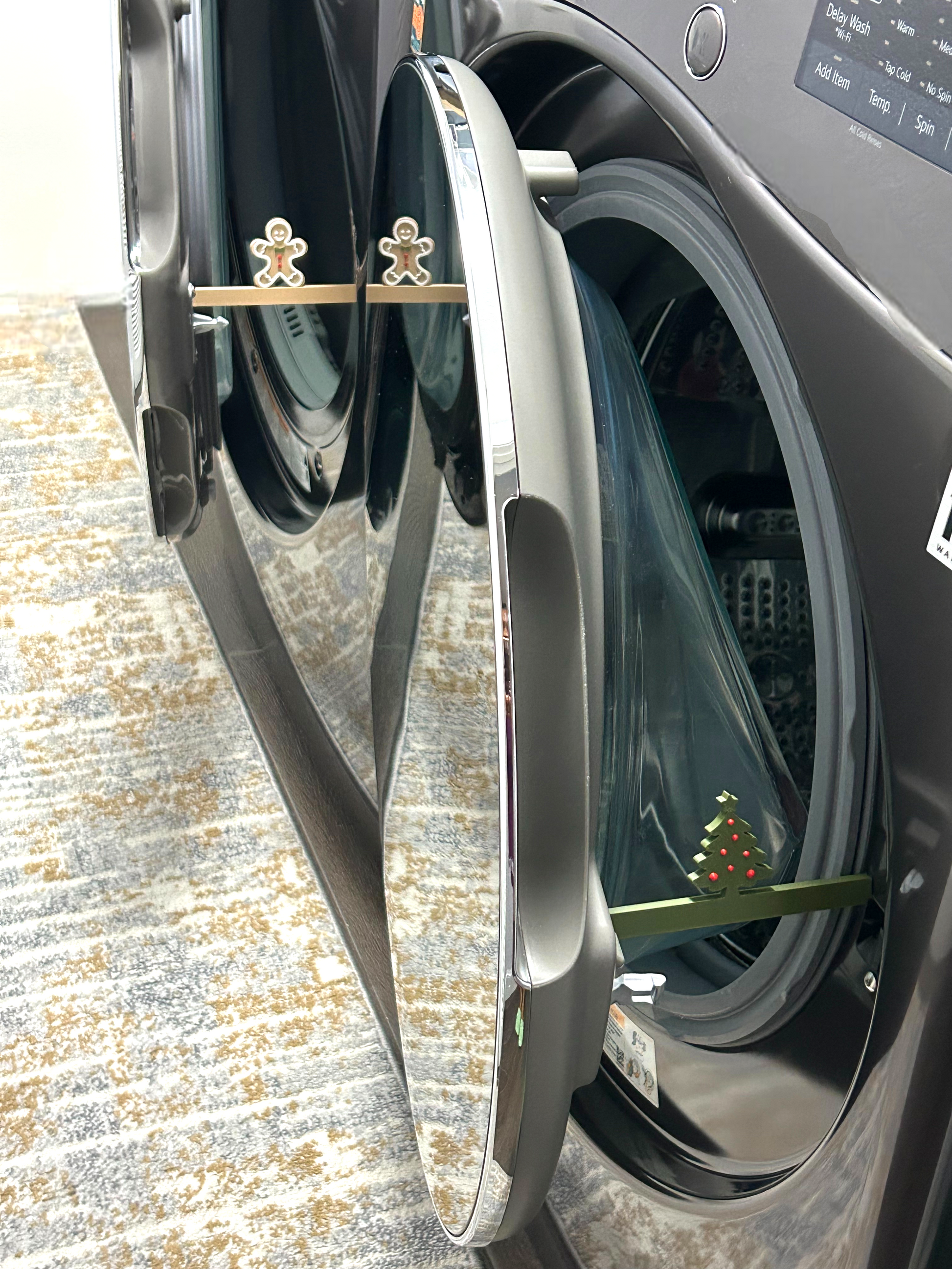 The Holiday Combo Edition of AjarBuddies™ brings the warmth of the season into your laundry room. Featuring a smiling Gingerbread man and a Christmas tree, this limited-run edition keeps your washer and dryer doors slightly ajar to allow air to circulate - naturally helping prevent mold, mildew, and odors.